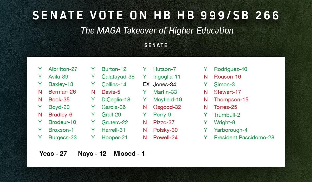 - How you can get involved: This bill now heads to the House for a full vote. Find your Representative and tell them to vote NO on The MAGA Takeover of Higher Education (HB 999/SB 266).